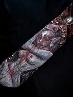 Hand painted distressed vintage tie with jewel accents and burnt texture by Squeak Starzula