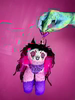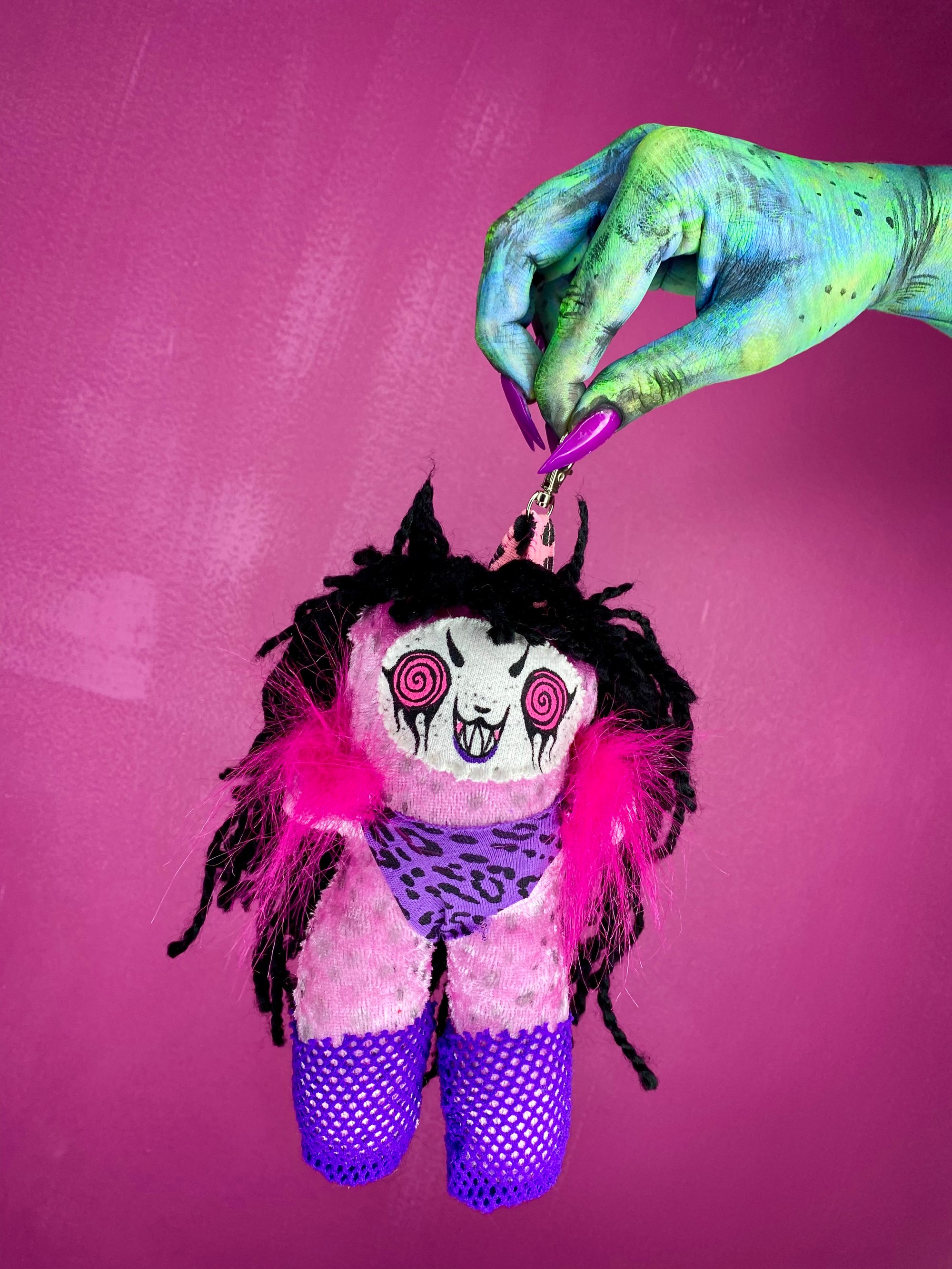 Hand stitched 7 inch wearable art plush Squeak doll with a keychain clasp to attach to purses, bags, belts and more ✨