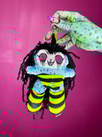 Hand stitched 7 inch wearable art plush Squeak doll with a keychain clasp to attach to purses, bags, belts and more ✨