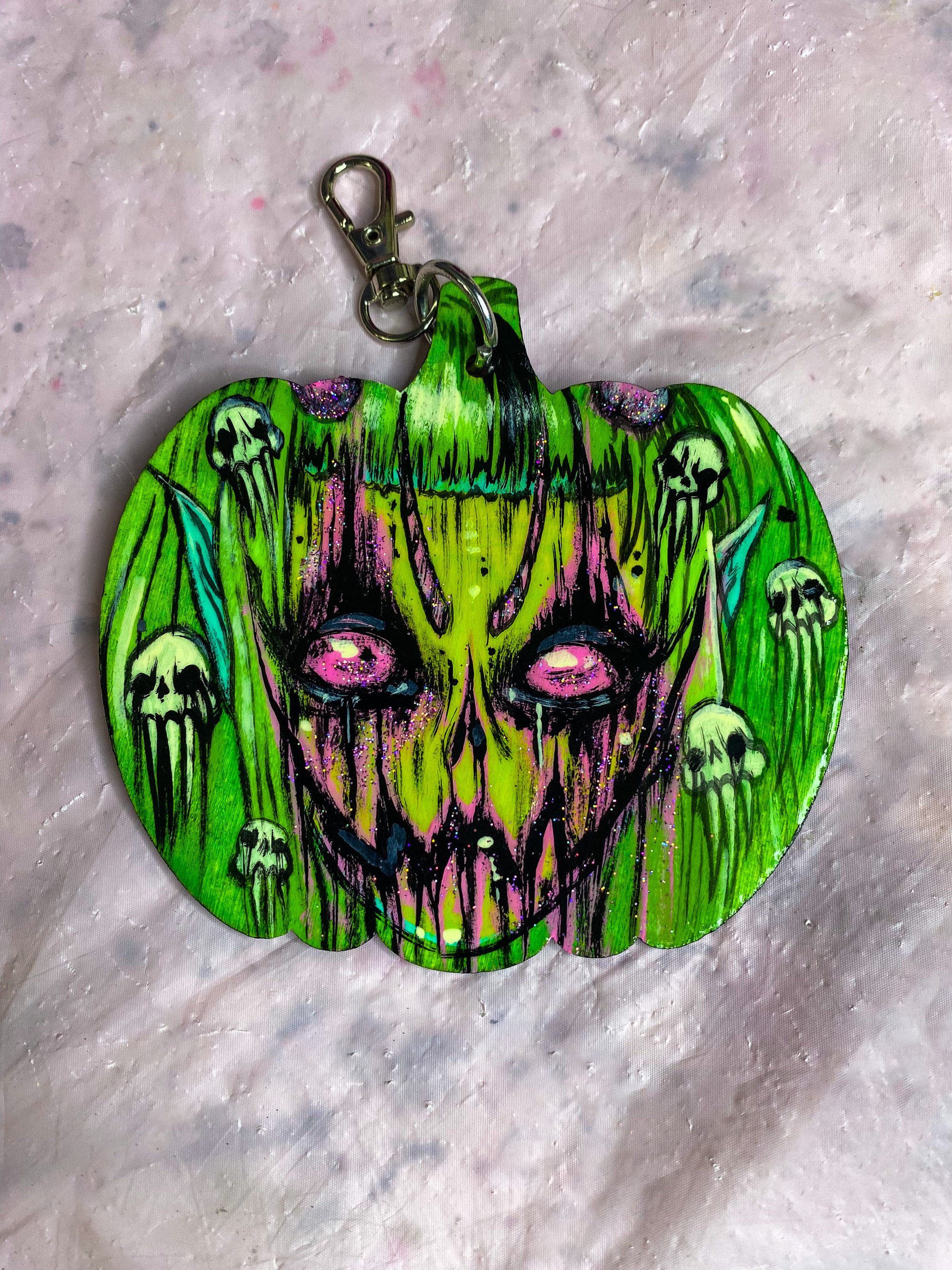 Hand painted, resin coated wooden mini painting that doubles as a keychain 🍬🎃