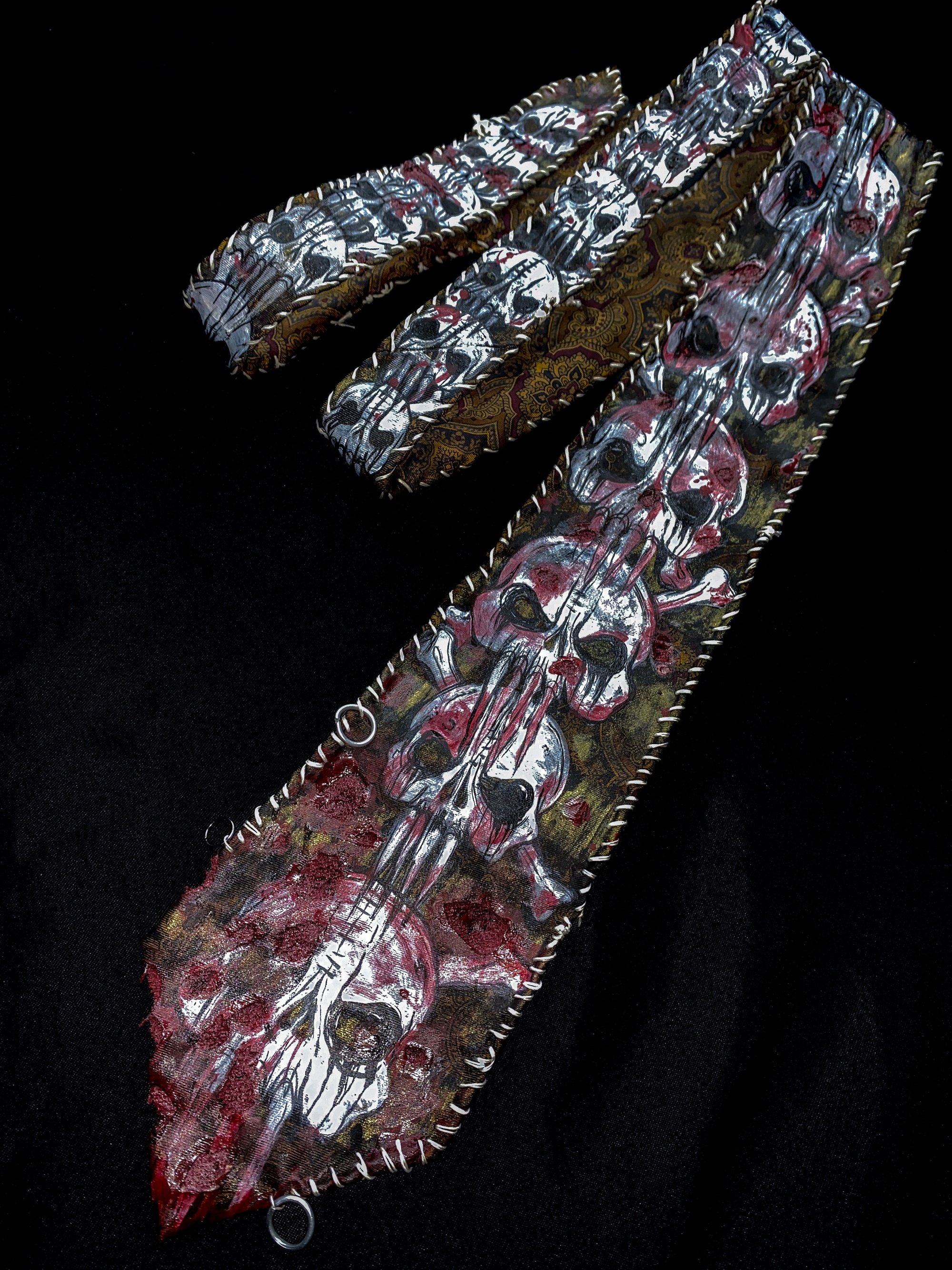 Hand painted distressed vintage tie with hand stitchedaccents and metallic slick color shift by Squeak Starzula